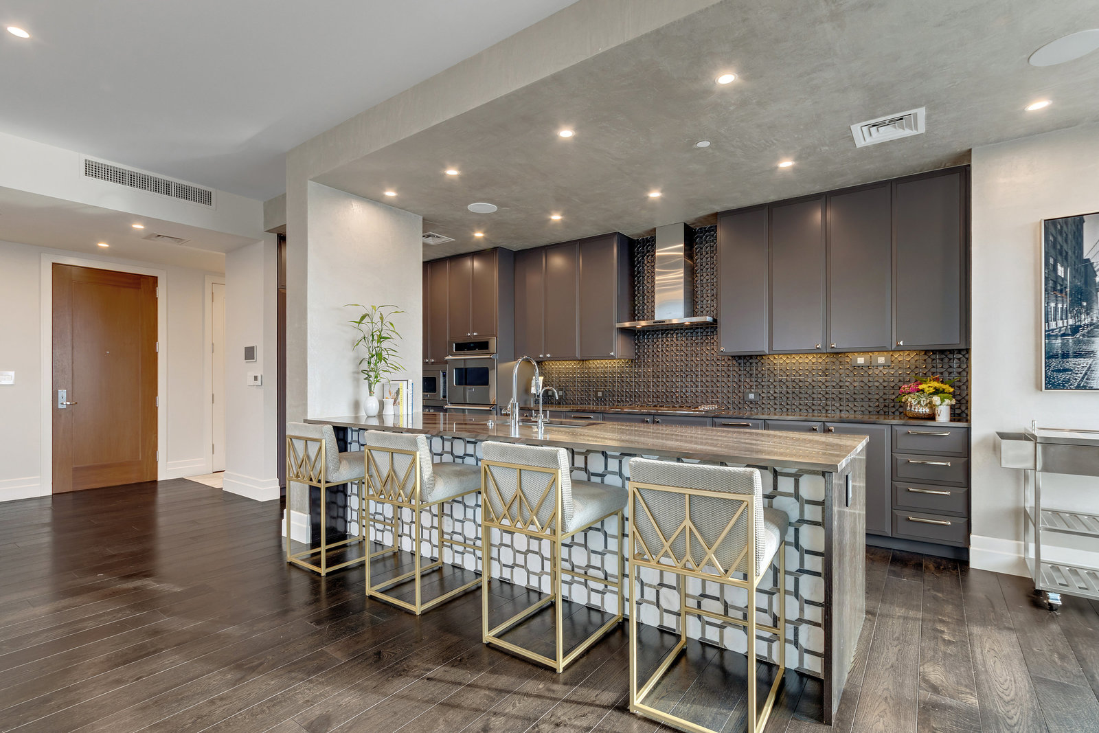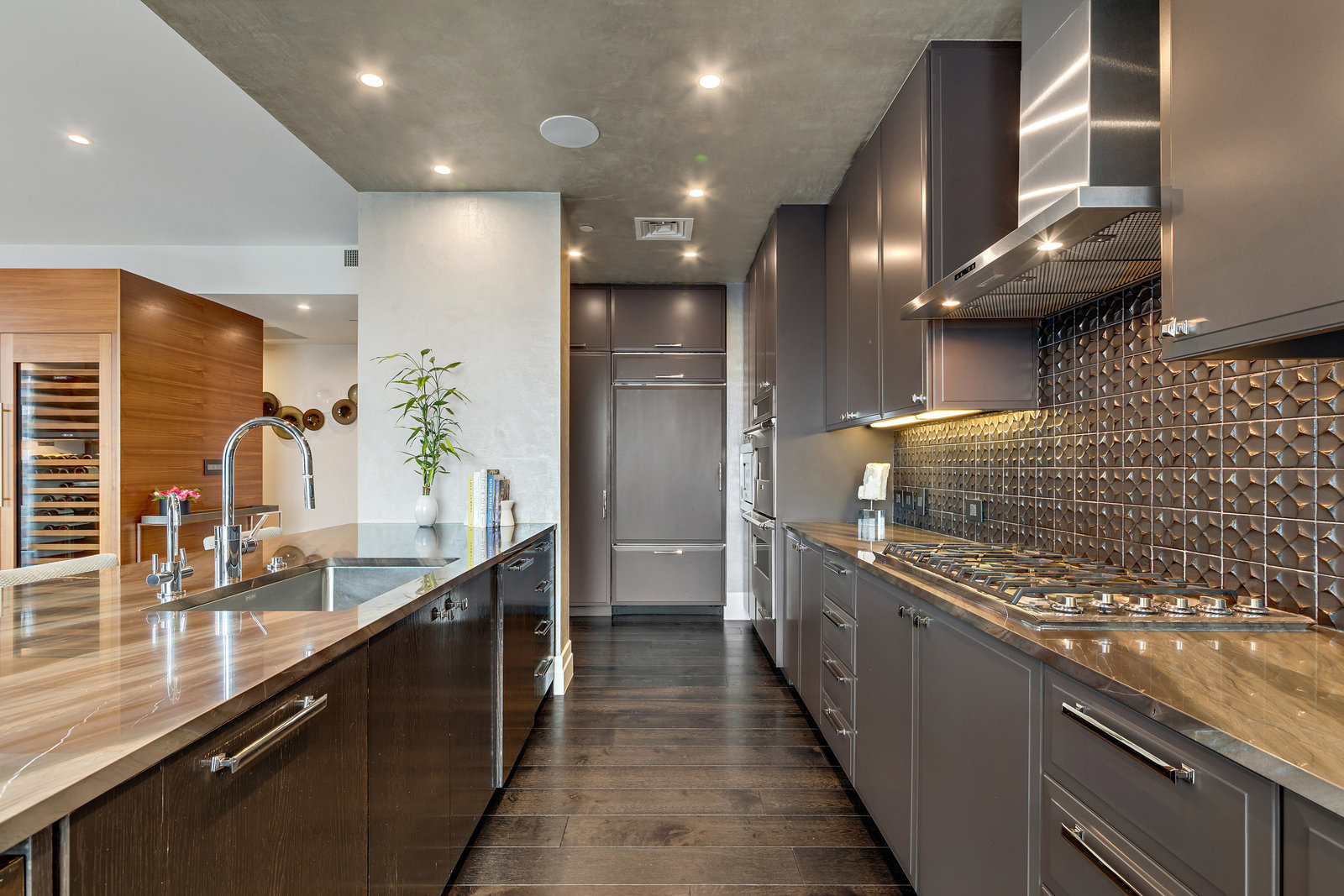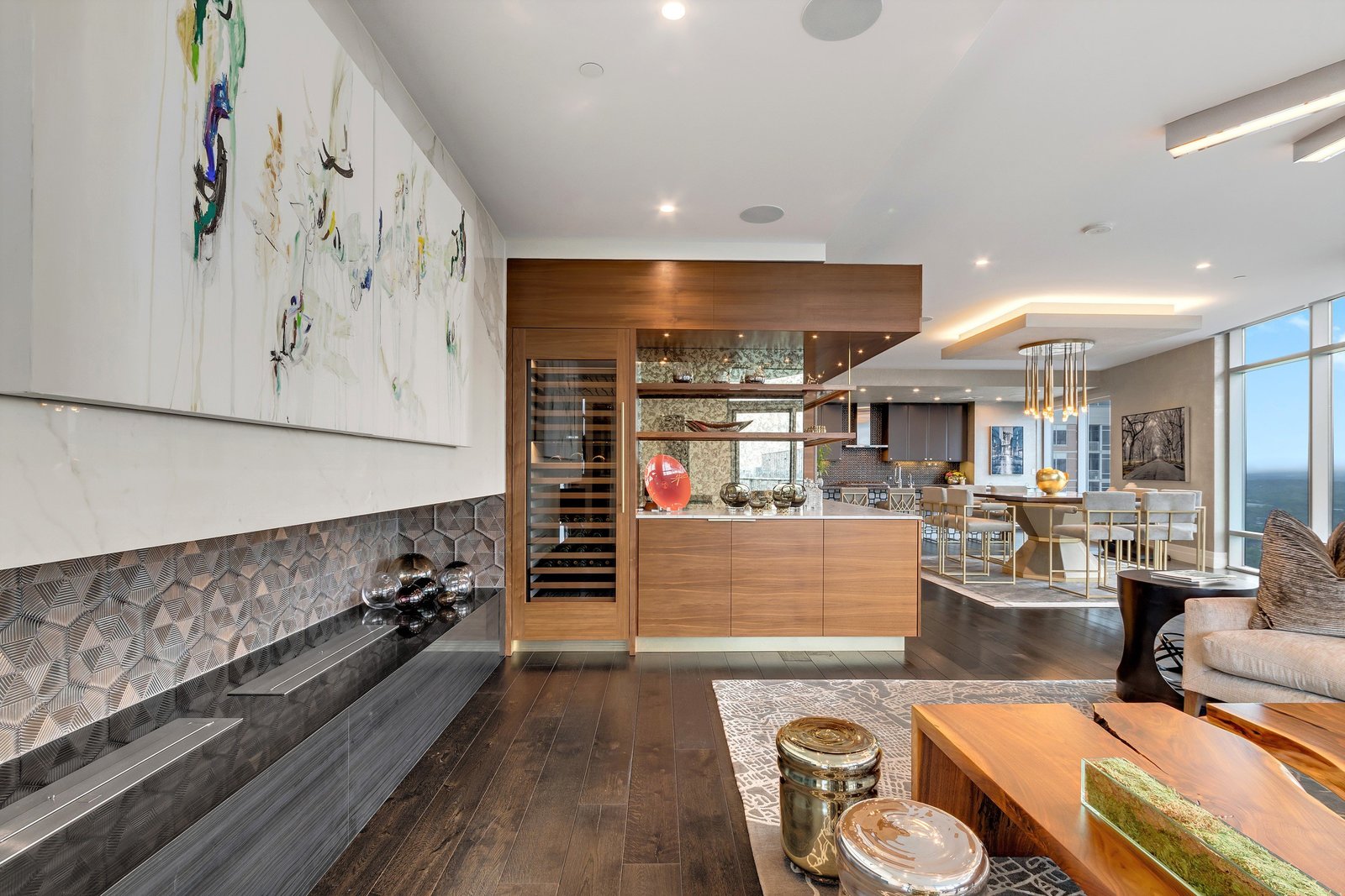 With over 2,800+ SQFT, this spacious residence is custom-designed with award-winning finishes and features 2 private balconies, 2 master suites with custom walk-in California closets, a large office with a built-in Murphy bed that can be used as a third bedroom, and 3 sub-zero wine refrigerators that can hold up to 450 bottles. Three premium and conveniently located reserved parking spaces and a climate-controlled storage unit are also included.